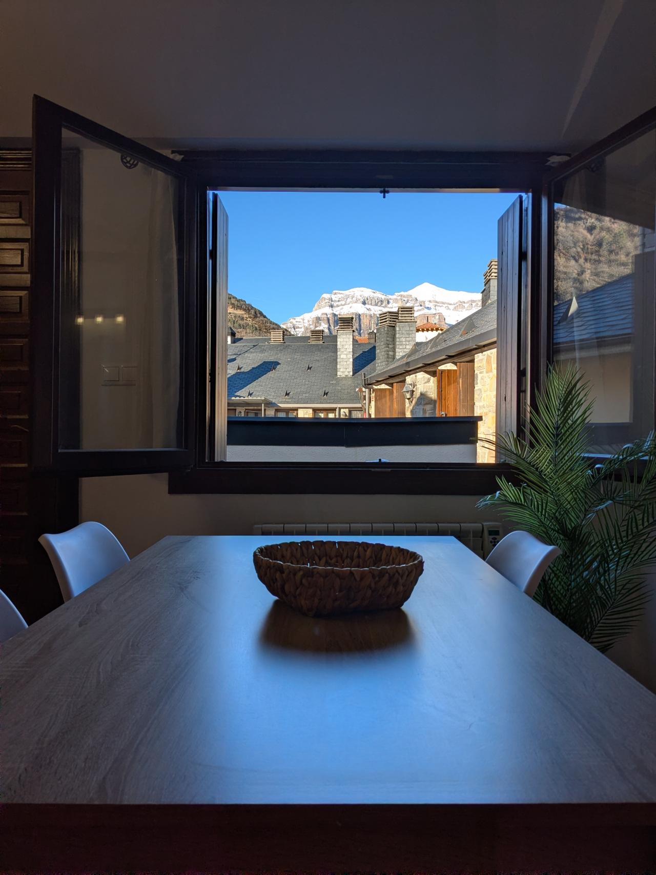 El apartamento Asueto se encuentra en la tercera planta de un edificio y cuenta con ascensor. Todas las estancias cuentan con vistas a la montaña desde el salón podremos contemplar la imponente cumbre del Pico Mondarruego 2848 metros vigilante de la entrada del Valle de Ordesa. Cuenta con dos habitaciones, una de ellas con cama doble y otra con cama individual y cama nido, cocina independiente completamente equipada, salón comedor y baño con du...